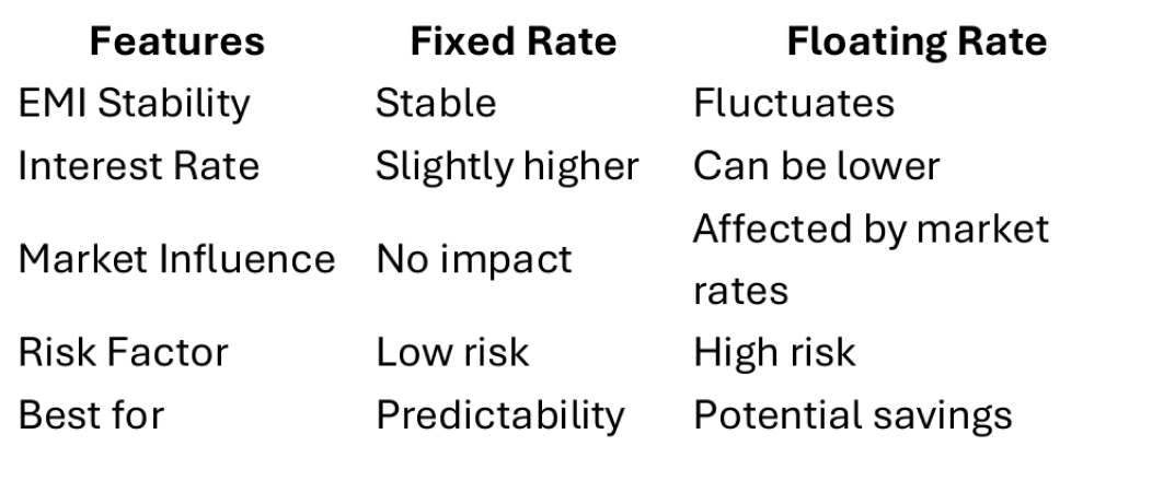 A: It depends on your preference. Fixed rates offer stability, while floating rates may offer lower interest but come with risks.