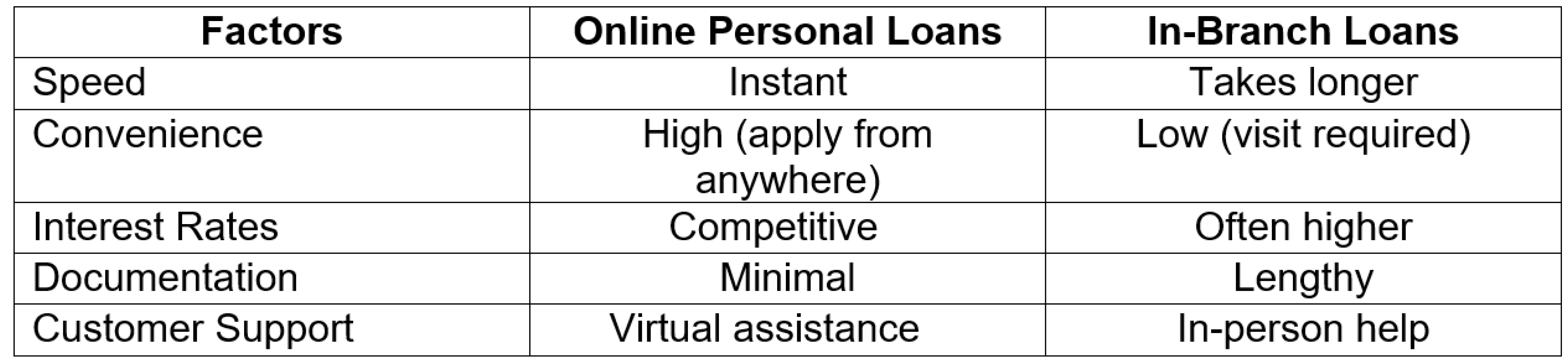 Deciding between online personal loans and in-branch loans comes down to what works best for you, how quickly you need the money, and how comfortable you are with technology. Online loans are quick and easy but need some tech skills, while in-branch loans give your personal help but take more time.